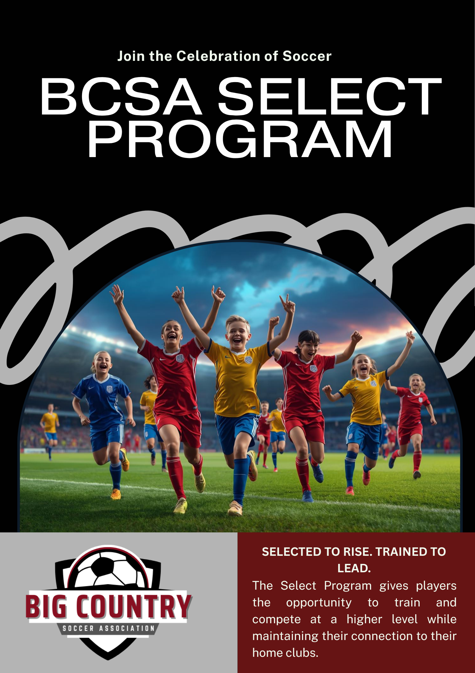 The BCSA Select Program unites the top youth soccer talent from across our rural district, providing a pathway for players who are ready to challenge themselves, grow as athletes, and represent their communities with pride.
