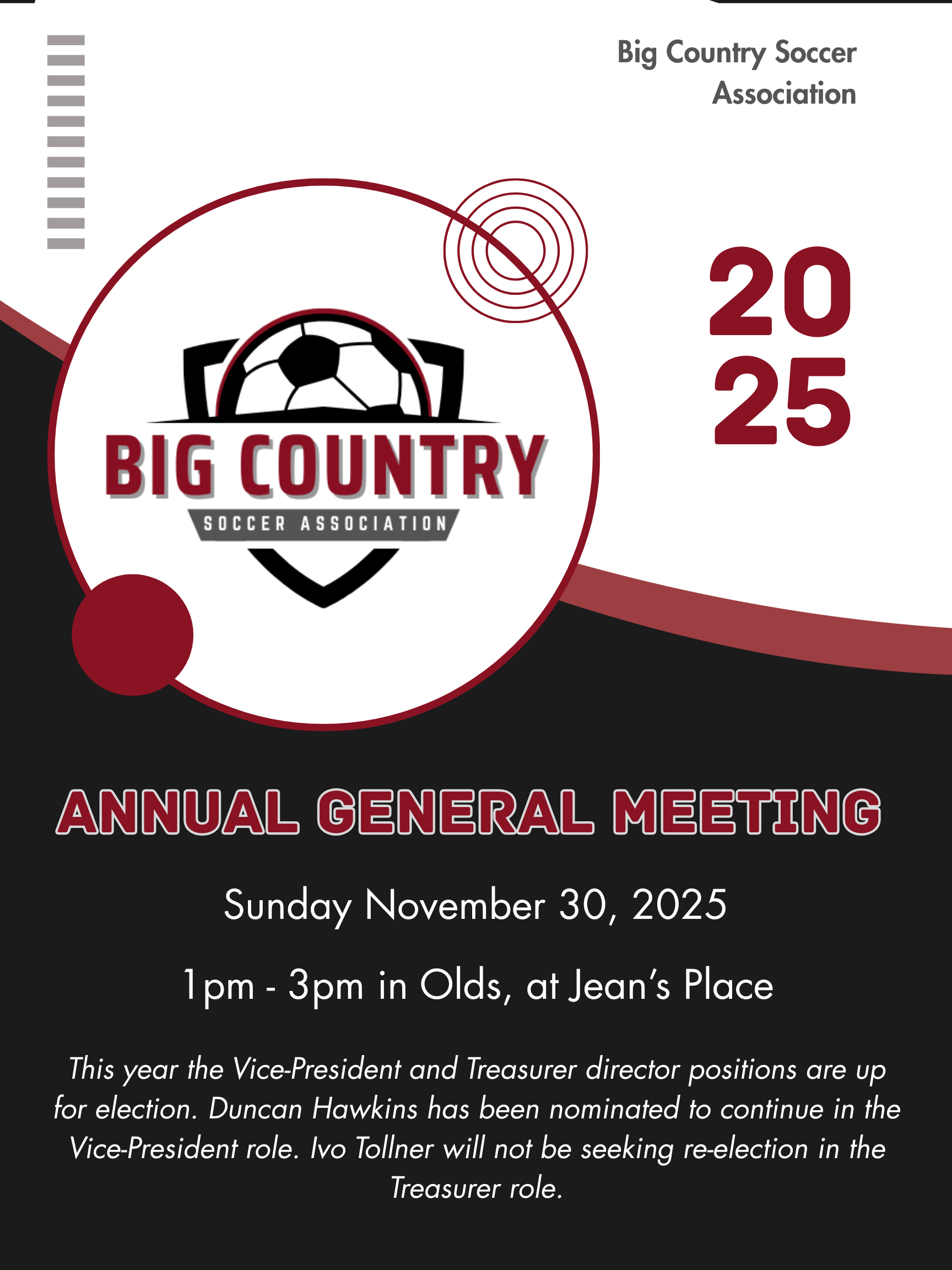 The Big Country Soccer Association (BCSA) is excited to announce its upcoming Annual General Meeting (AGM), marking another important milestone in our continued growth and evolution as a district.