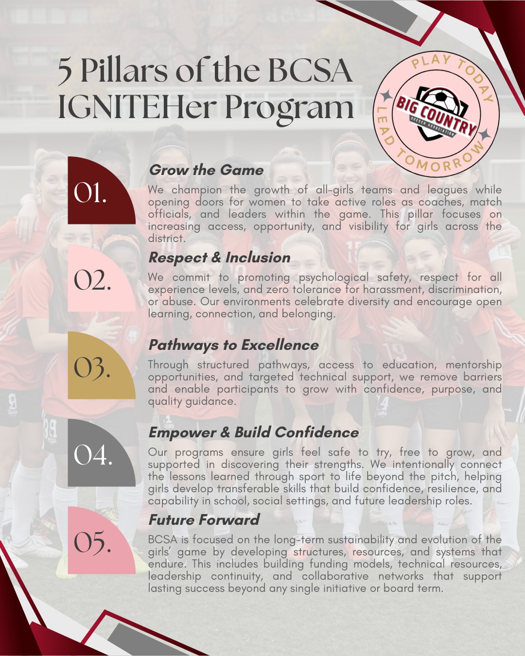 Across Big Country, girls deserve a soccer experience where they feel welcomed, supported, challenged, and inspired to stay in the game. IGNITEHer was created to ignite that spark — to grow the girls’ game by building environments where girls belong, develop confidence, discover leadership, and fall in love with soccer for life.